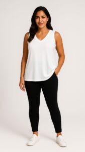Soft & stretchy! Perfect singlet. I’m 5”4 and I can tuck it in , wear it under tops or on its own.